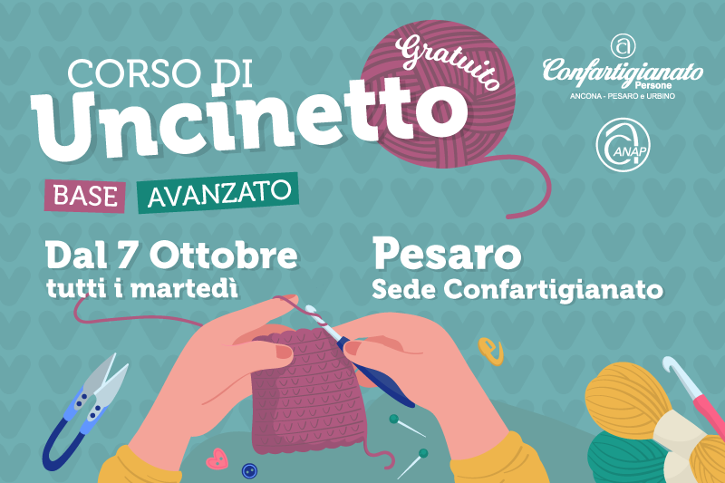 Luglio 8, 2025 Luglio 8, 2025ANAP Corso base e avanzato di uncinetto, dal 7 ottobre a PesaroANAP Confartigianato organizza un corso gratuito di creazioni all’uncinetto, dedicato alle associate over 60, in […]