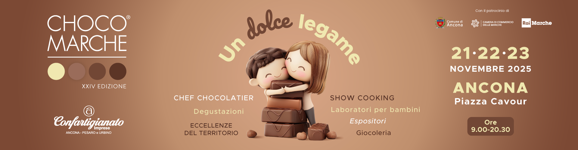 La XXIV edizione di Choco Marche ti aspetta dal 21 al 23 novembre in Piazza Cavour ad Ancona. Tre giornate dedicate al cioccolato di qualità, alle eccellenze della pasticceria, della ristorazione e della cultura gastronomica.