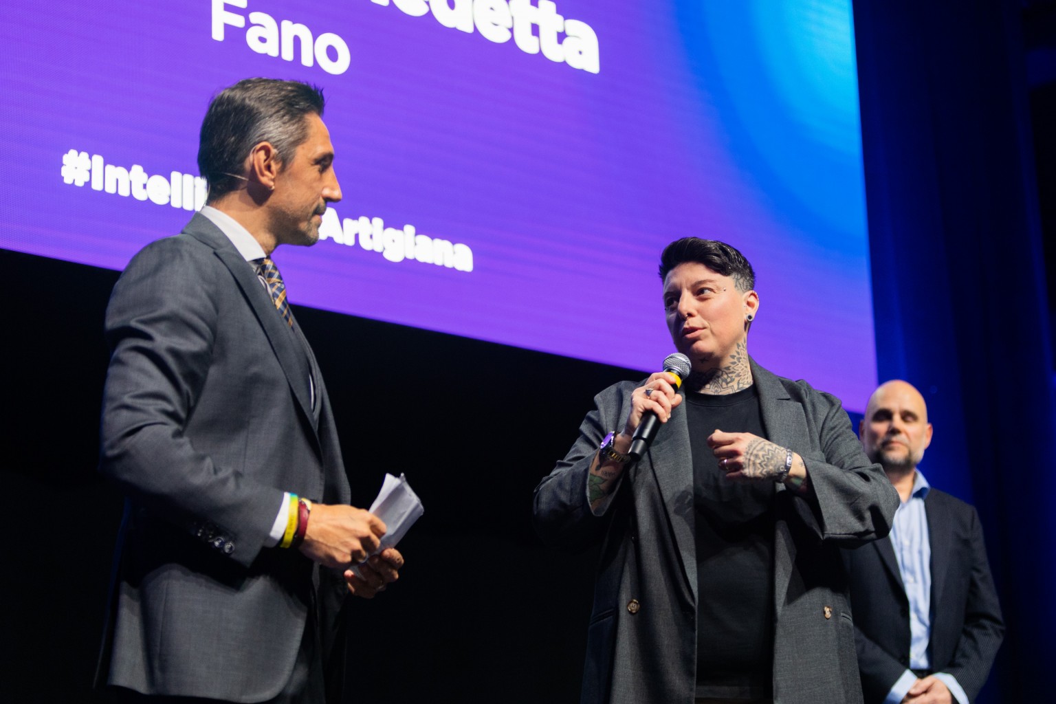 L’evento, patrocinato dal Comune di Pesaro, si è aperto con un omaggio all’imprenditoria artigiana del nostro territorio. Sul palco dell’Auditorium Scavolini, coordinati dal giornalista èTVMarche, Maurizio Socci, sei imprenditori della nostra provincia hanno raccontato le loro “Storie di Valore”. Storie di eccellenza, di innovazione, di creatività, storie di micro e piccole imprese che hanno saputo distinguersi e portare alto il valore del Made In Italy nel mondo. A portare la loro voce sono state le imprese: Severino & Son Hospitality, L&G Film Studios, Benedetta Pagnoni, Cinabro Restauro di Maria Veronica Soro, Cecchini Italia e Imperfezioni di Carta di Arianna Esposito.
