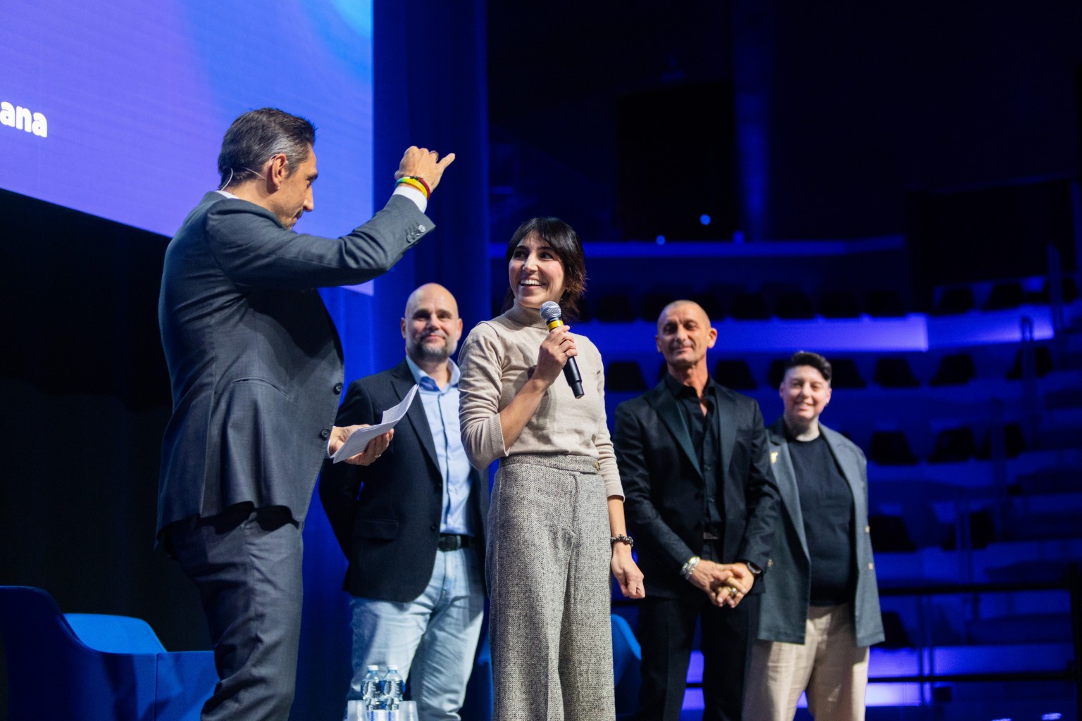 Un Auditorium Scavolini al completo, con la presenza di oltre 1400 persone, ha accolto l’evento “Intelligenza Artigiana - Storie di Valore”, organizzato da Confartigianato Imprese Ancona – Pesaro e Urbino per celebrare l’eccellenza delle micro e piccole imprese del nostro territorio e per offrire alla cittadinanza un importante momento di approfondimento legato al mondo della persona, alle famiglie e ai giovani. Ospiti d’eccezione della serata sono stati Daniela Lucangeli, docente di Psicologia dello sviluppo e dell'Educazione all'Università di Padova ed esperta di psicologia dell'apprendimento e Giuseppe Lavenia, psicoterapeuta e divulgatore scientifico, che hanno conquistato il pubblico presente.