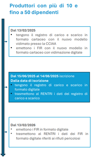 - gli enti e le imprese produttori di rifiuti non pericolosi da attività industriali e artigianali, con più di 10 e fino a 50 dipendenti.