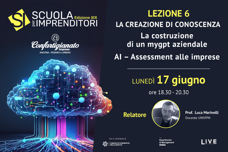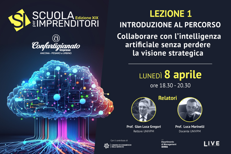 Un percorso di Alta Formazione elaborato per offrire un aggiornamento continuo agli imprenditori, approfondendo tematiche legate al management e agli strumenti più innovativi di organizzazione e gestione aziendale come l'Intelligenza artificiale. Lo scopo è aiutare le imprese ad affrontare un mercato in continua evoluzione. Il percorso, gratuito per gli imprenditori partecipanti, potrà essere seguito presso la sede Confartigianato di via Fioretti 2/a ad Ancona e in collegamento online presso la sede Confartigianato di via Bedosti 21 a Pesaro.